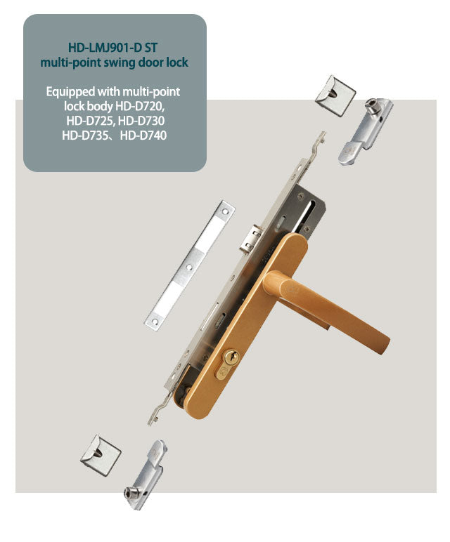 Flat door multi-point lock Plastic steel door lock Inside and outside handle lock Door lock